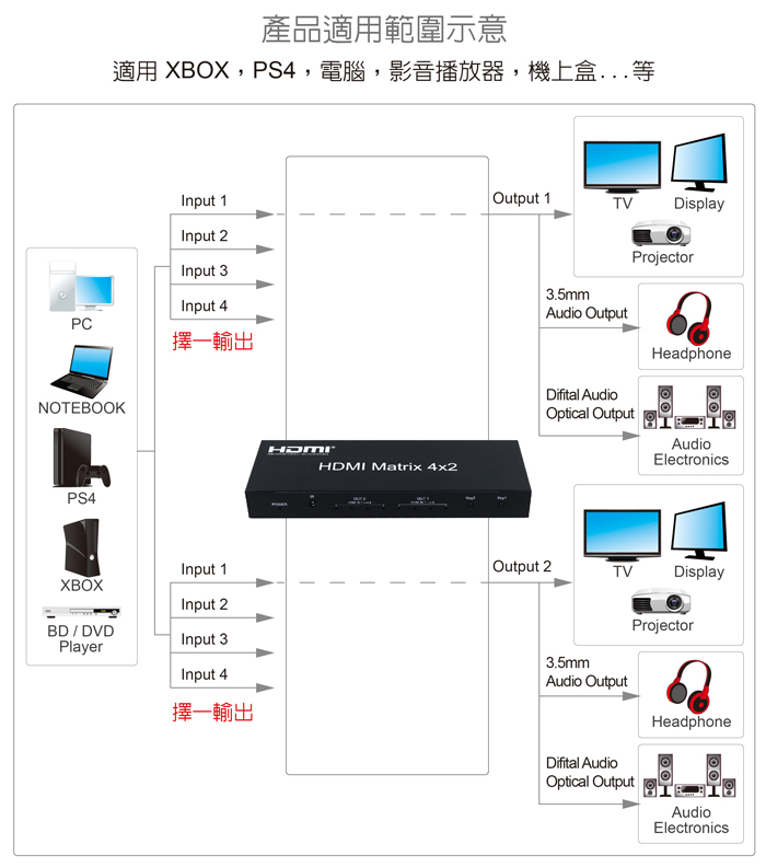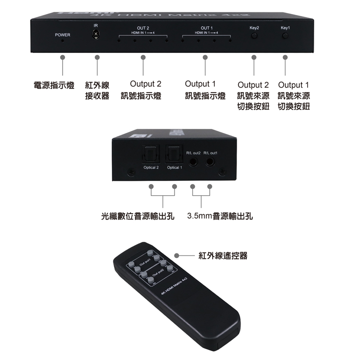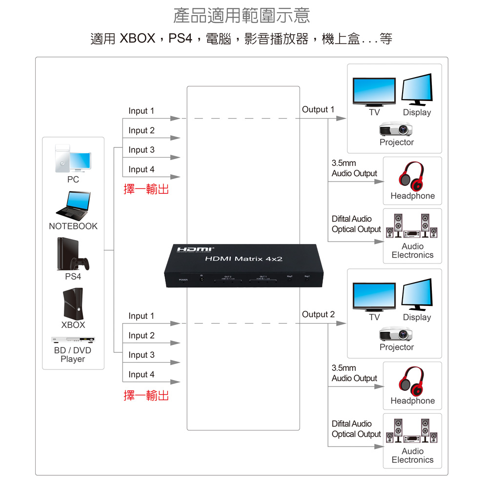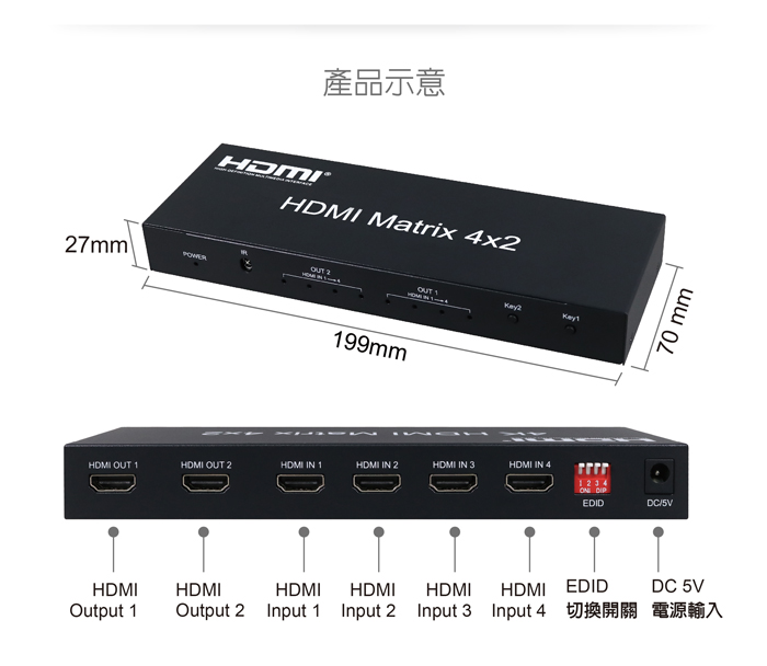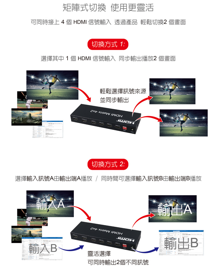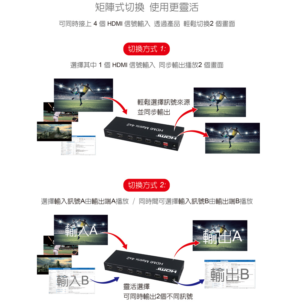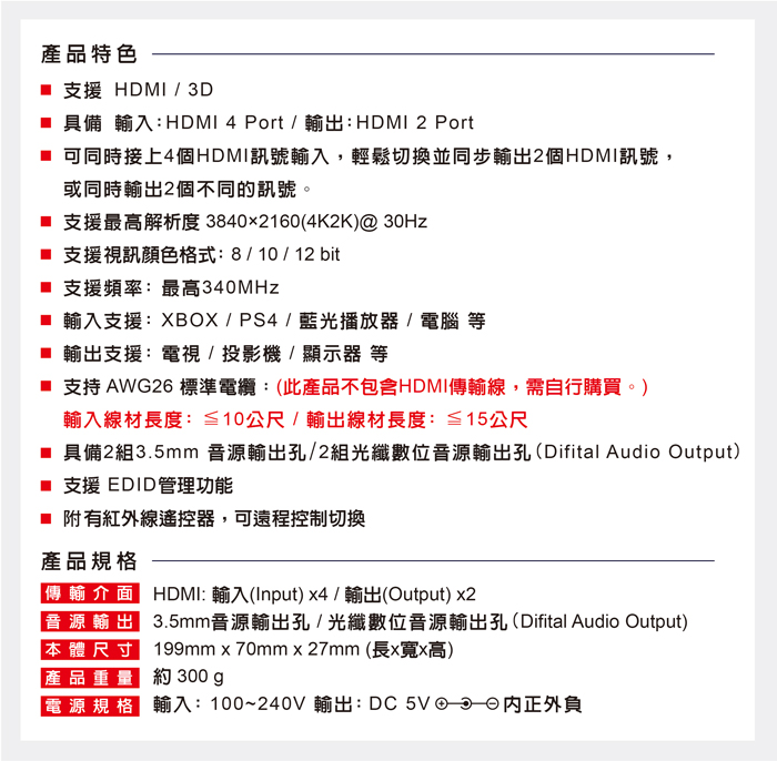 ● 具備HDMI輸入4埠/HDMI輸出2埠