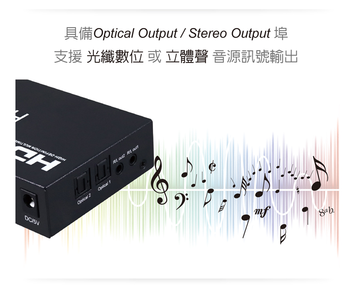 ● 具備3.5mm音源/光纖數位音源輸出