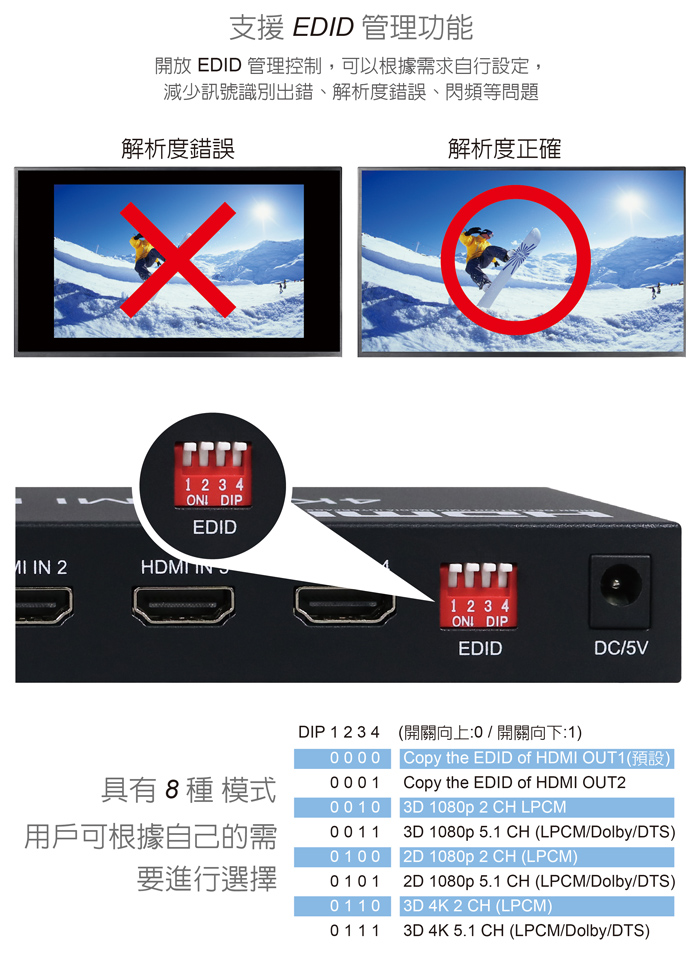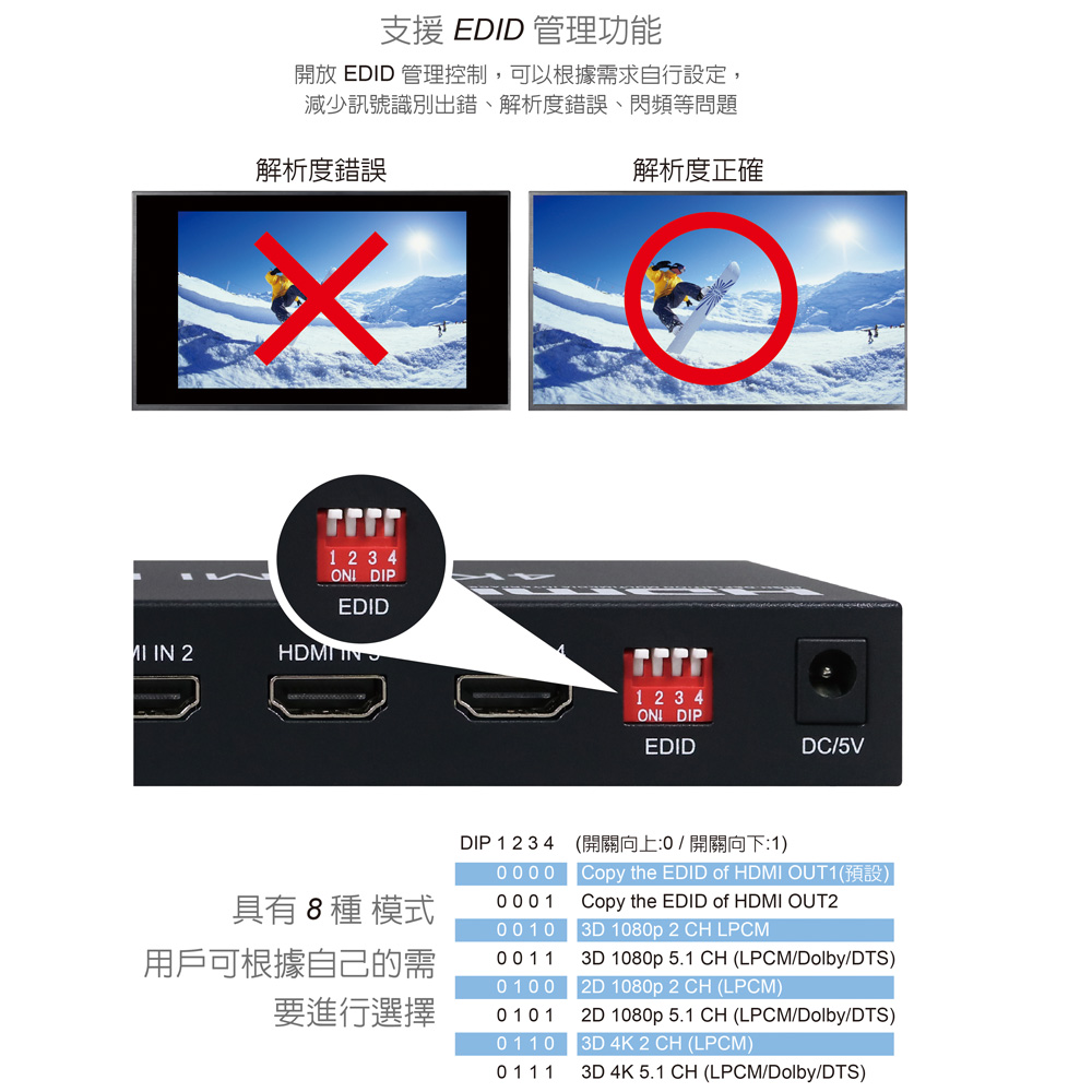 ● 支援 EDID管理功能