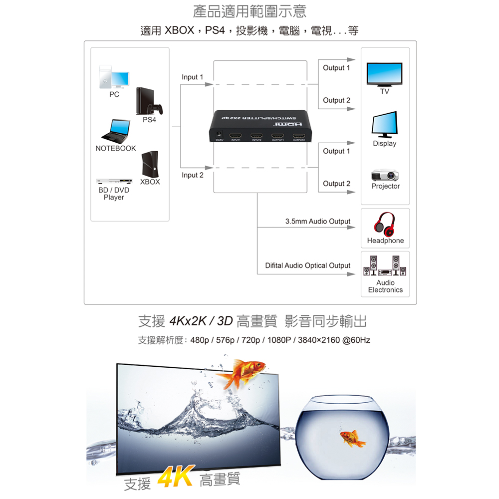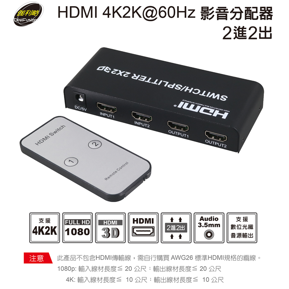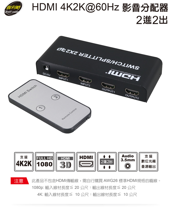 ● 支援4K輸入線材≦10公尺;輸出線材≦10公尺