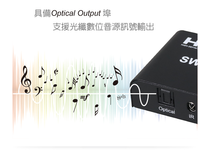 ● 具備3.5mm音源/光纖數位音源輸出