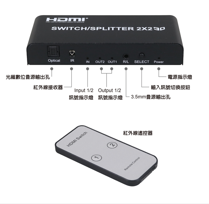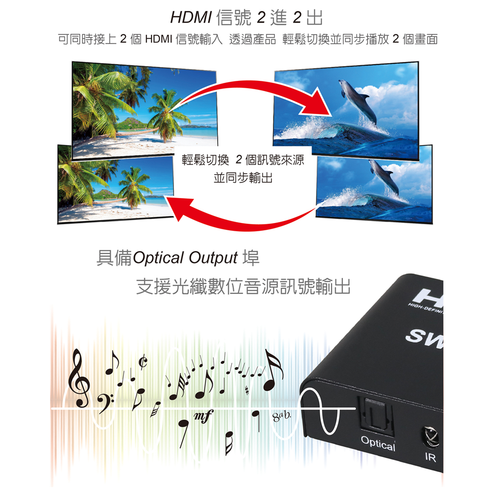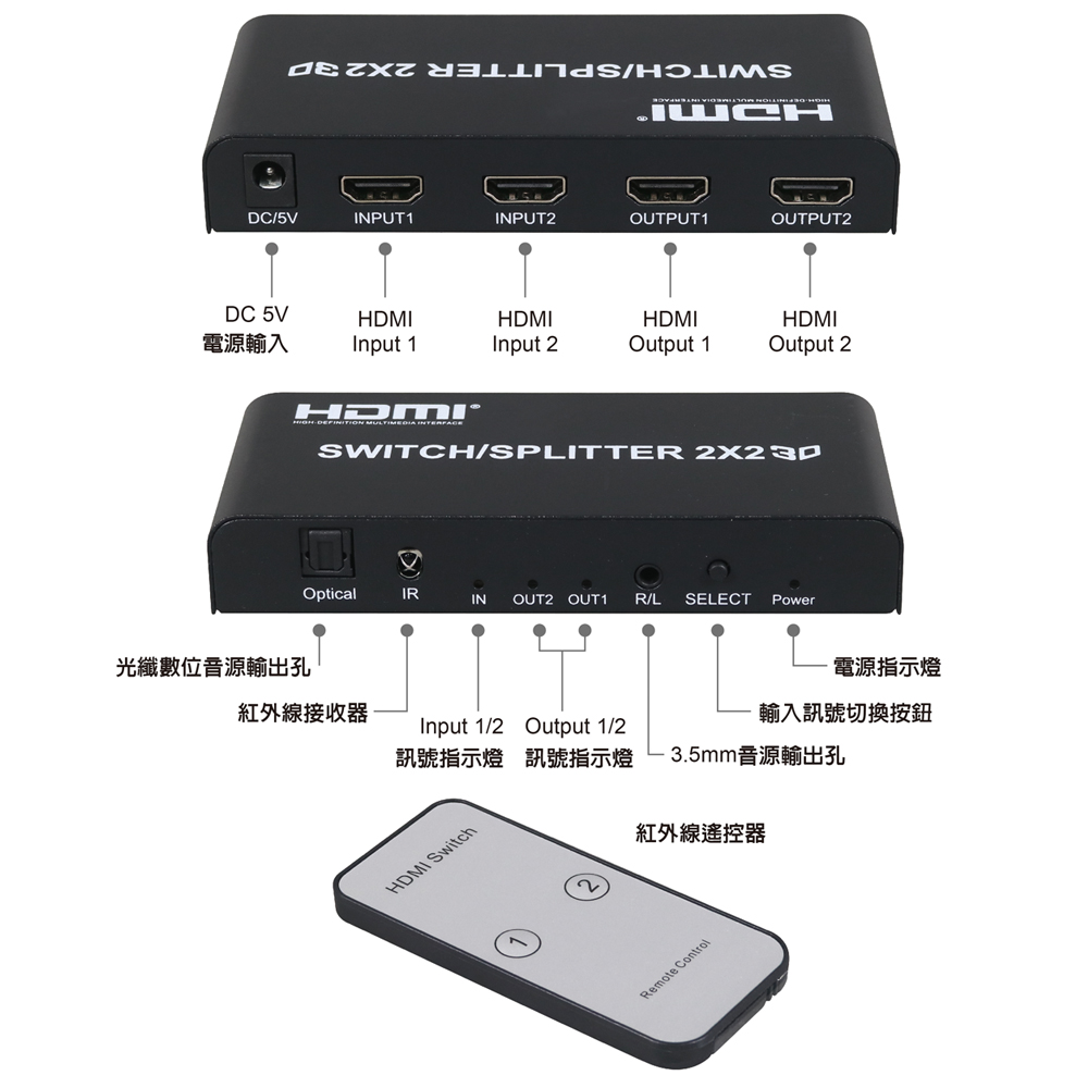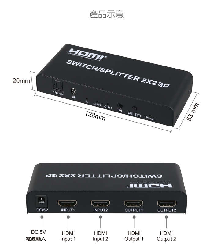 ● 具備HDMI輸入2埠/HDMI輸出2埠