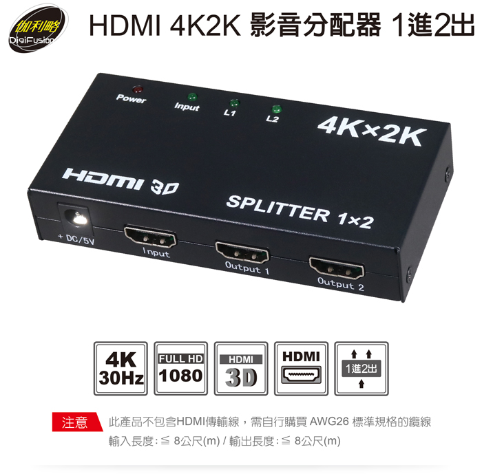 伽利略 HDMI 4K2K影音分配器 1進2出
