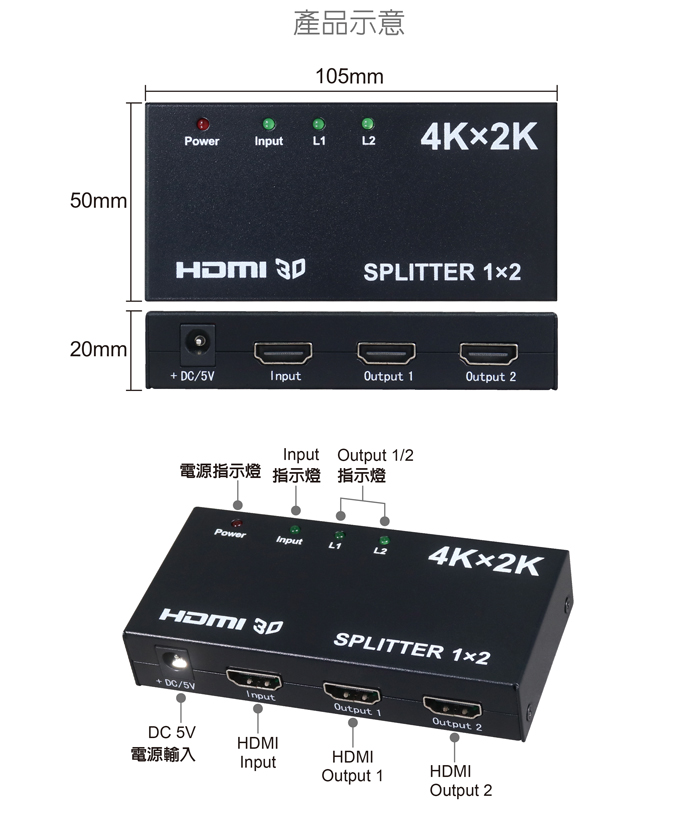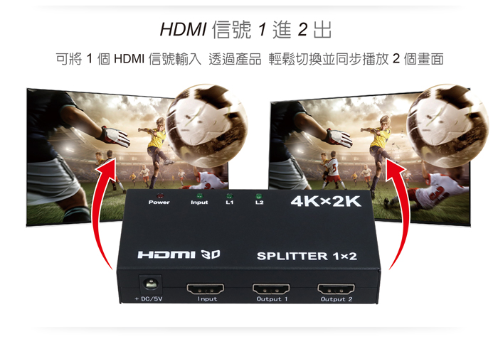● 具備HDMI輸入1埠/HDMI輸出2埠