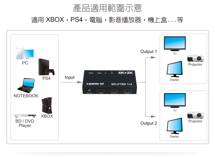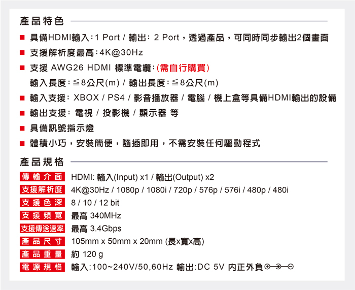 ● 支援4K輸入線材≦8公尺;輸出線材≦8公尺