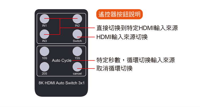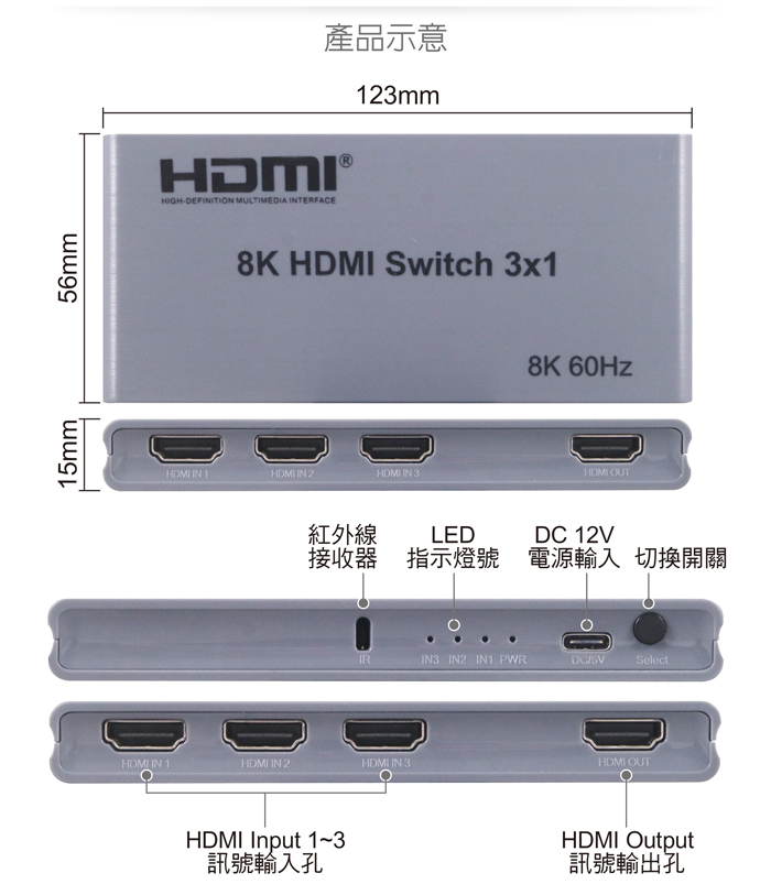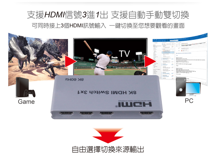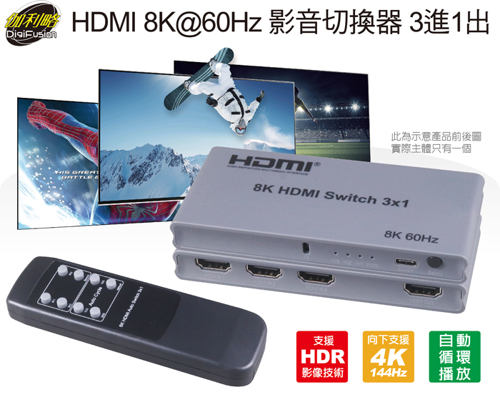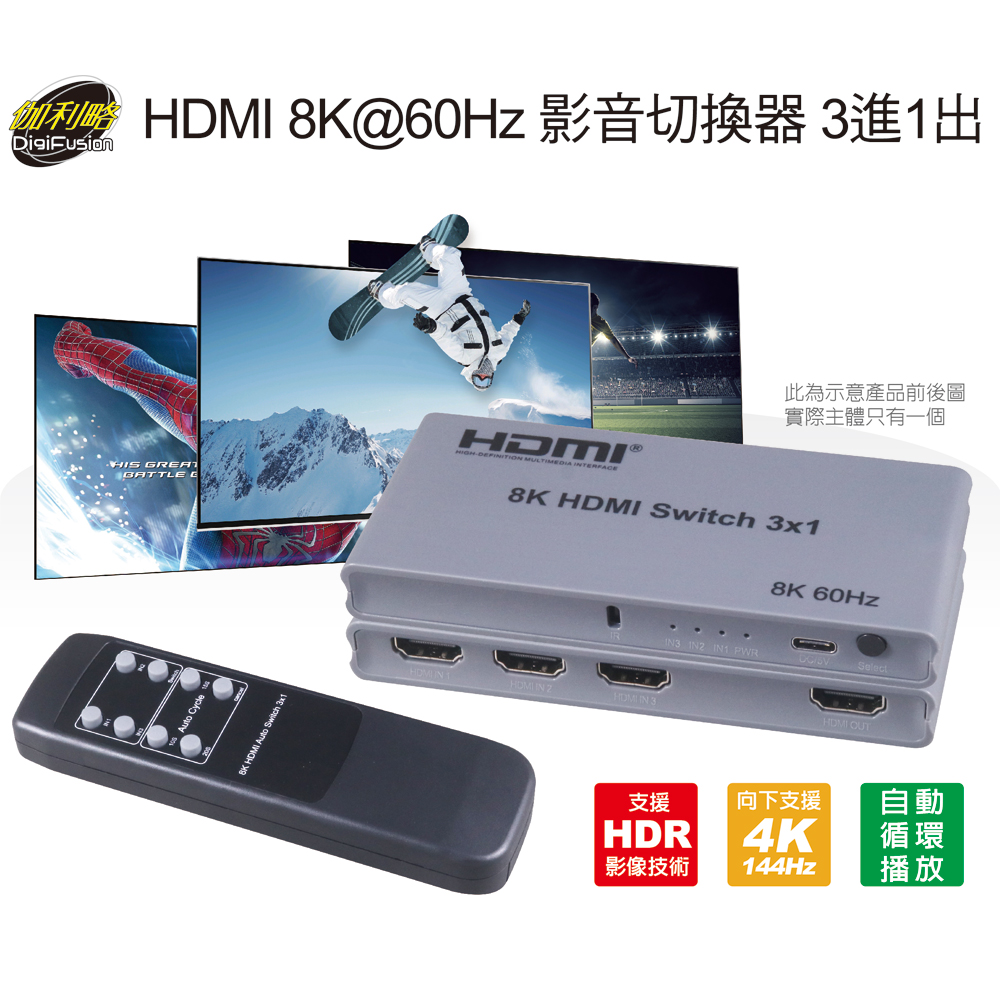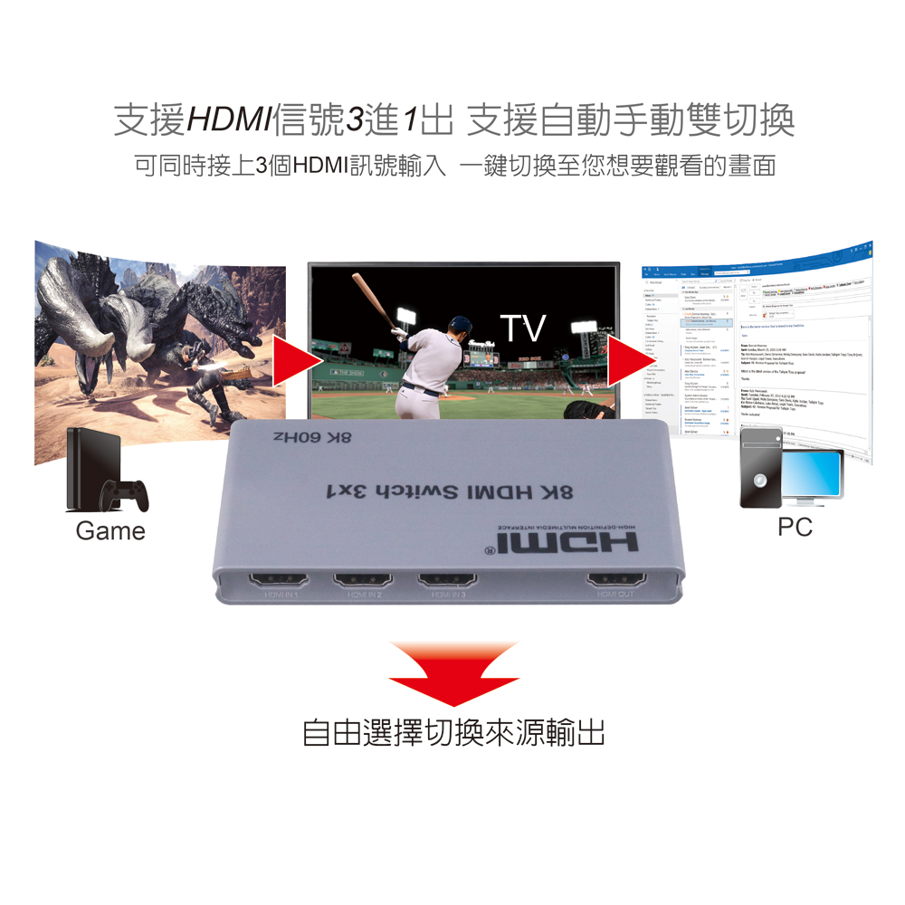 伽利略 HDMI 8K@60Hz 影音切換器 3進1出