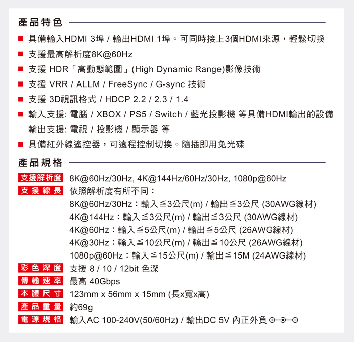 ● 支援 3D視訊格式 / HDCP 2.2 / 2.3 / 1.4