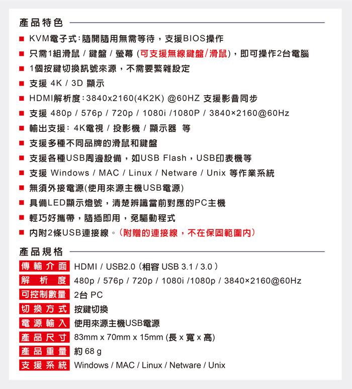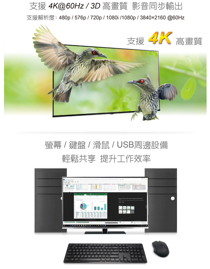 ● HDMI解析度: 4K@60Hz 支援影音同步