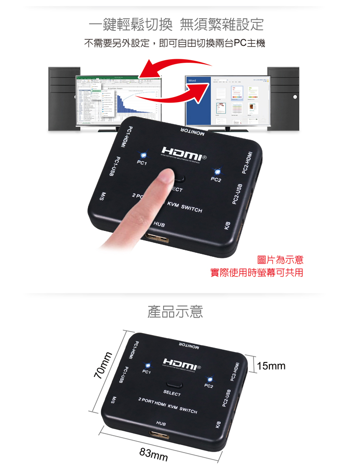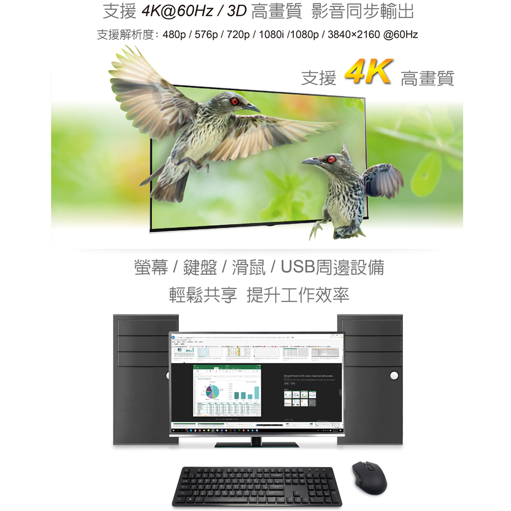 ● 只需1組滑鼠/鍵盤/螢幕,即可操作2台電腦