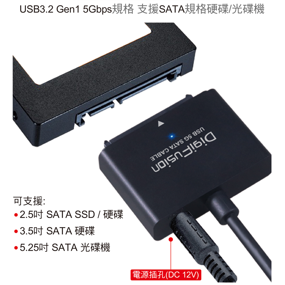 ● 可連接2.5 / 3.5 / 5.25吋 SATA 硬碟 / SSD / 藍光光碟機