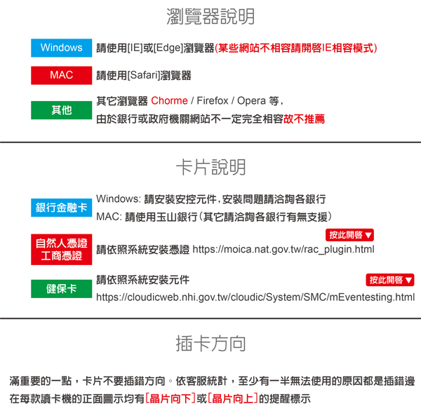 Max OS 10.10 以上 (請依照各機關/銀行支援而定)