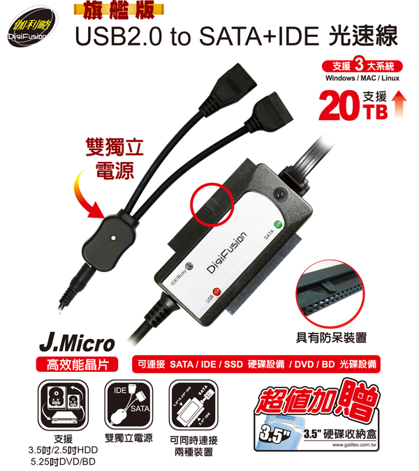 ■ 雙獨立外接電源接頭,保護硬碟延長使用壽命