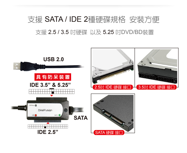 ■ 可連接IDE介面2.5吋/3.5吋硬碟/5.25吋DVD裝置