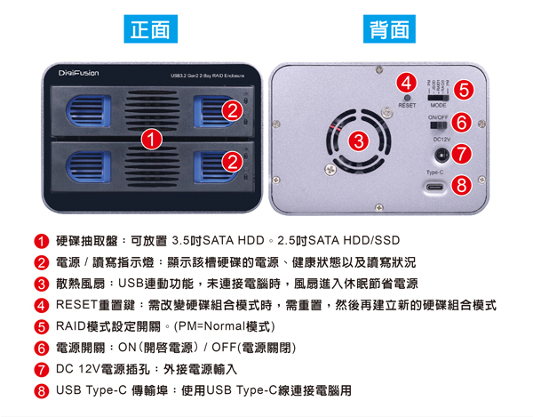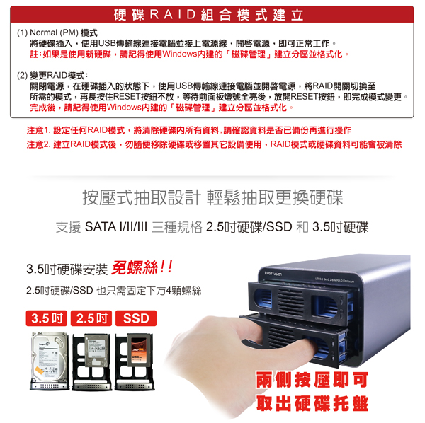 ¡½ ¤ä´© RAID 0 / RAID 1 / JBOD / Normal ¥|ºØ³]©w¼Ò¦¡