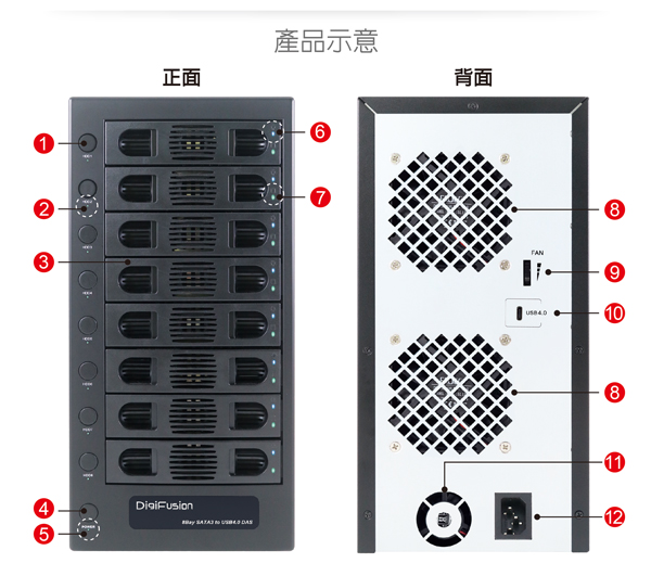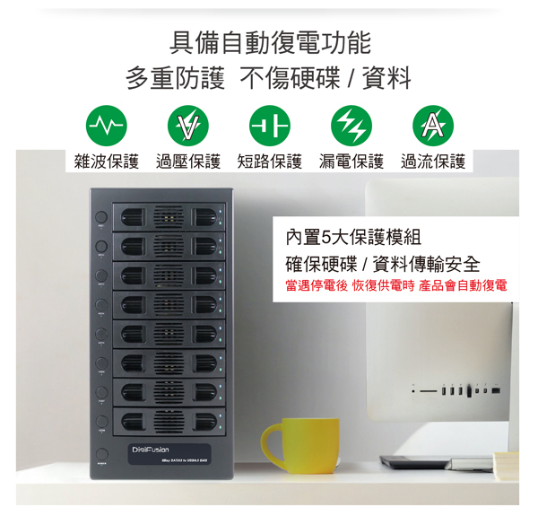 - 200W高功率電源,確保電源穩定,內置5大保護模組,確保硬碟/資料傳輸安全 (雜波保護/過壓保護/短路保護/漏電保護/過流保護)