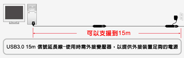 配置藍光LED指示燈(Link)可顯示Active USB3.0信號延長線(Active USB3.0 Repeater Cable)的連接狀態