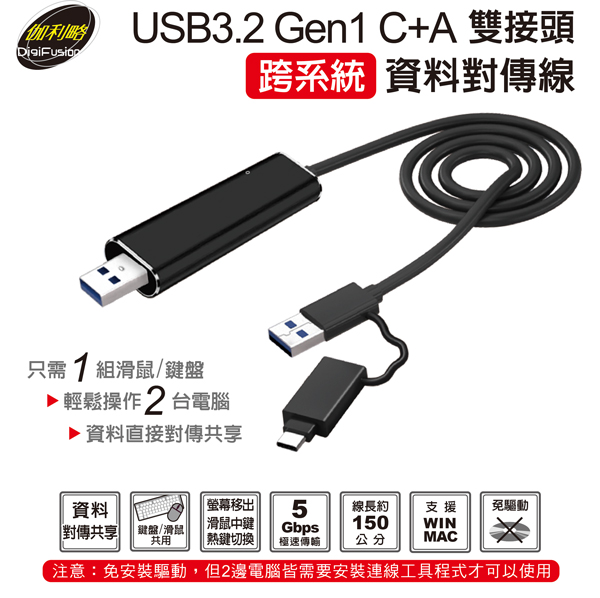- 雙接頭設計:USB Type C+A,可使用在大部份電腦USB插座