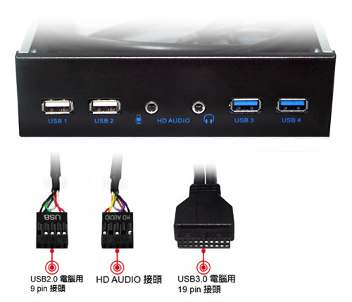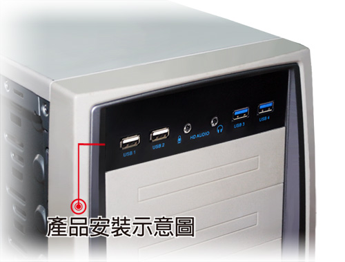 - 支援PC前置面板(5.25吋)擴充 USB3.0 2 埠 HUB + USB2.0 2 埠 HUB