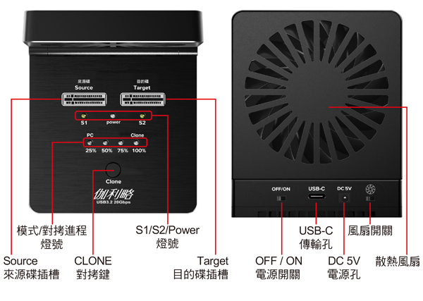 - 支援1對1鏡像拷貝,完美複製。不連接電腦情況下,一個按鍵自動鏡像。可拷貝開機系統碟 / 特殊格式硬碟檔