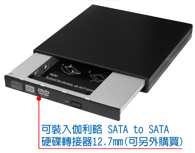 SATA to SATA硬碟轉接器12.7mm 正面裝入DVD ROM外接套件(12.7mm)示意圖