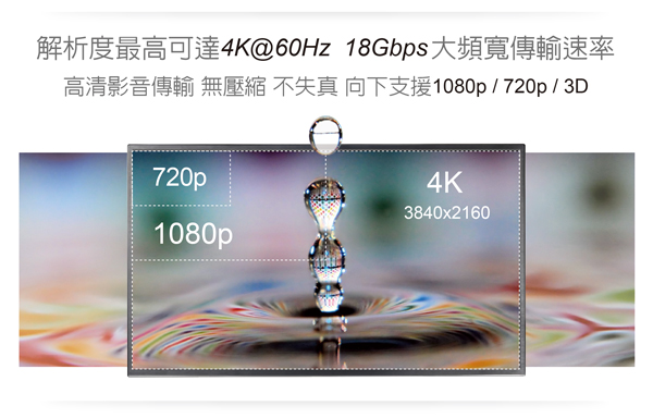 解析度最高4K@60Hz,傳輸無壓縮不失真