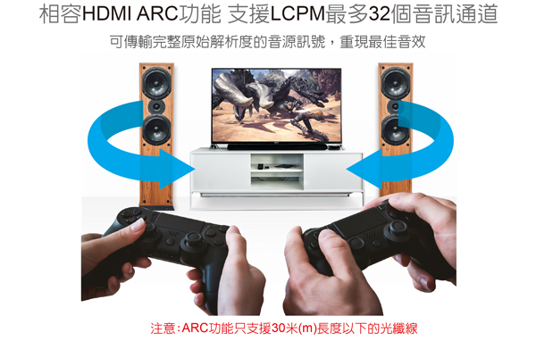 (一般HDMI 4K線建議為10米,使用光纖線可選購5~100米長度)