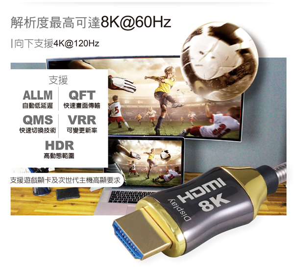 支援8K@60Hz / 4K@120Hz / 1080P 多種畫質模式