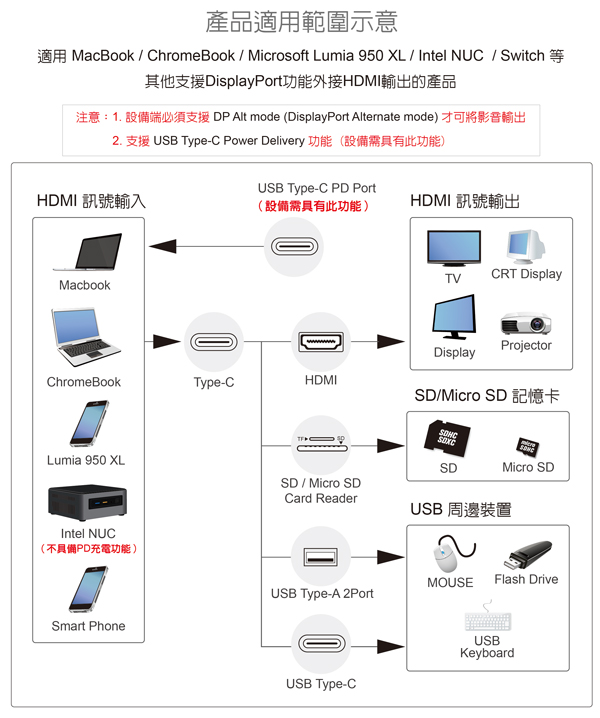 1. 適用: MacBook / ChromeBook / Microsoft Lumia 950 XL / Intel NUC等產品