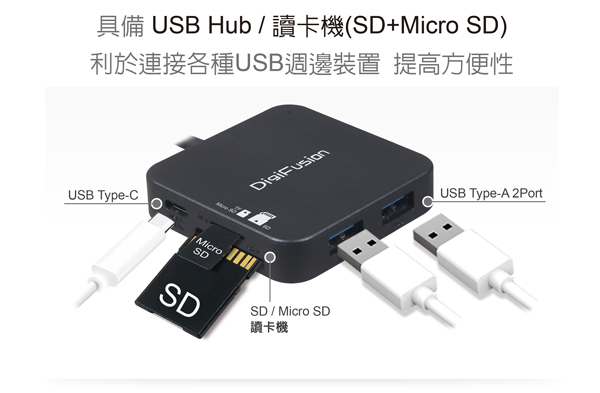 - 具備 USB Type-A 2埠 / USB Type-C 1埠,方便連接USB週邊產品