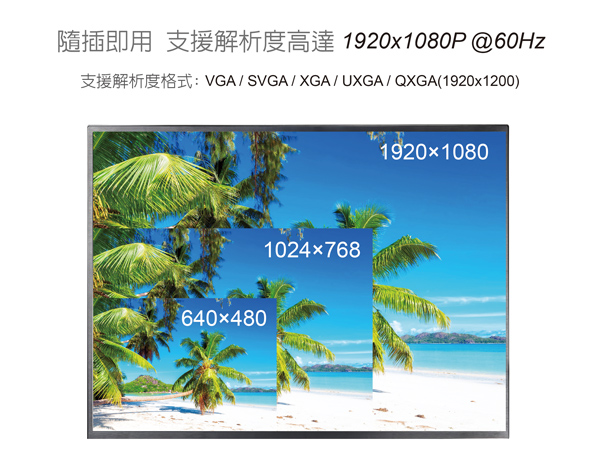 VGA解析度高達:1920X1080 @60Hz