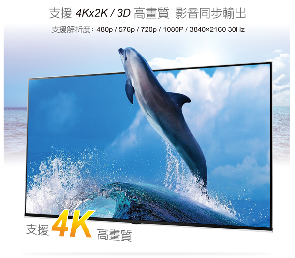 - 支援最高解析度 3840×2160 @30Hz