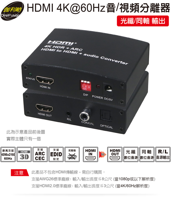 (當4K/60Hz解析度)輸入線材長度≦3公尺;輸出線材長度≦3公尺