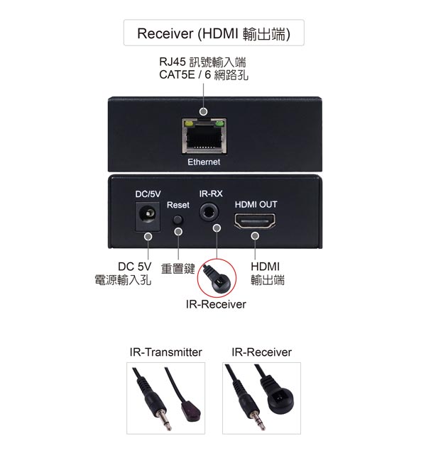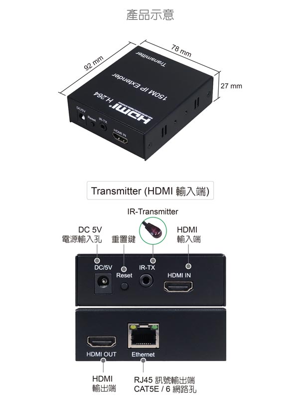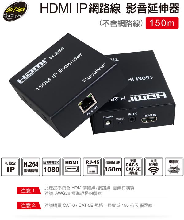 支援 CAT-6 / CAT-5E 規格網路線:線材長度≦ 150公尺