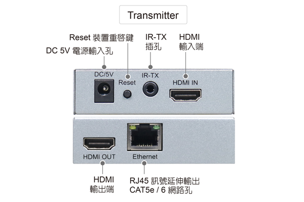 - 支援單向紅外線延伸: IR頻率38KHz NEC(輸出入設備需要支援紅外線傳輸)