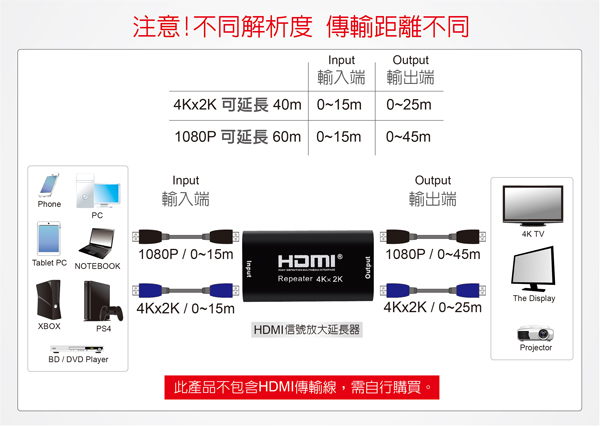 ¡½ ¸ÑªR«× 4Kx2K ¥i©µªø 40m¡A¿é¤J(Input): 0~15m / ¿é¥X(Output): 0~25m