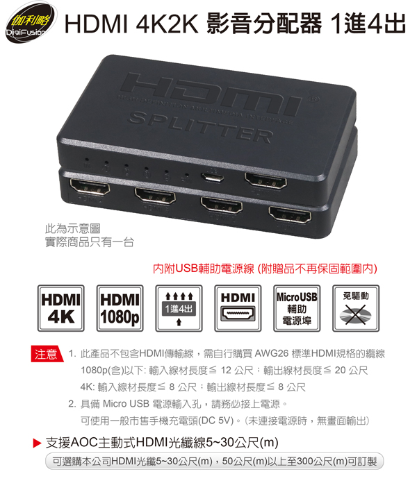 4K: 輸入長度≦8公尺;輸出長度≦8公尺