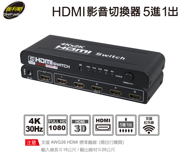 伽利略 HDMI 影音切換器 5進1出