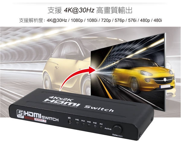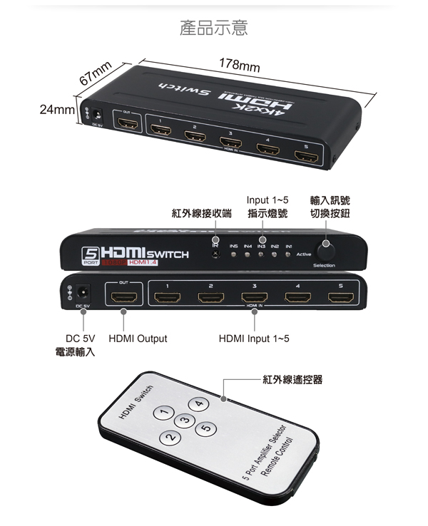 具備 輸入:HDMI 5 Port / 輸出:HDMI 1 Port
