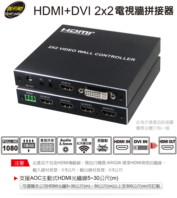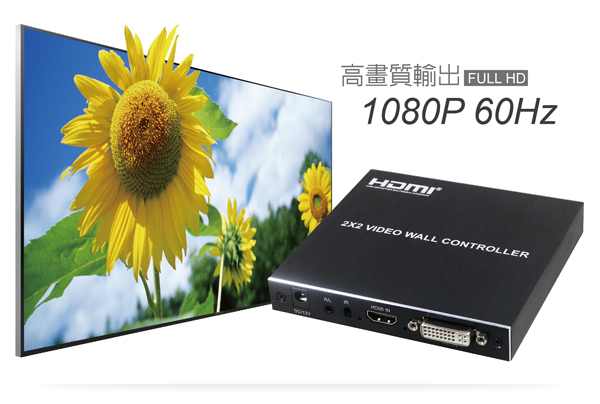 - 支援輸出畫面拼接,適合戶外廣告 / 商場展示電視牆或其他大型視訊展示