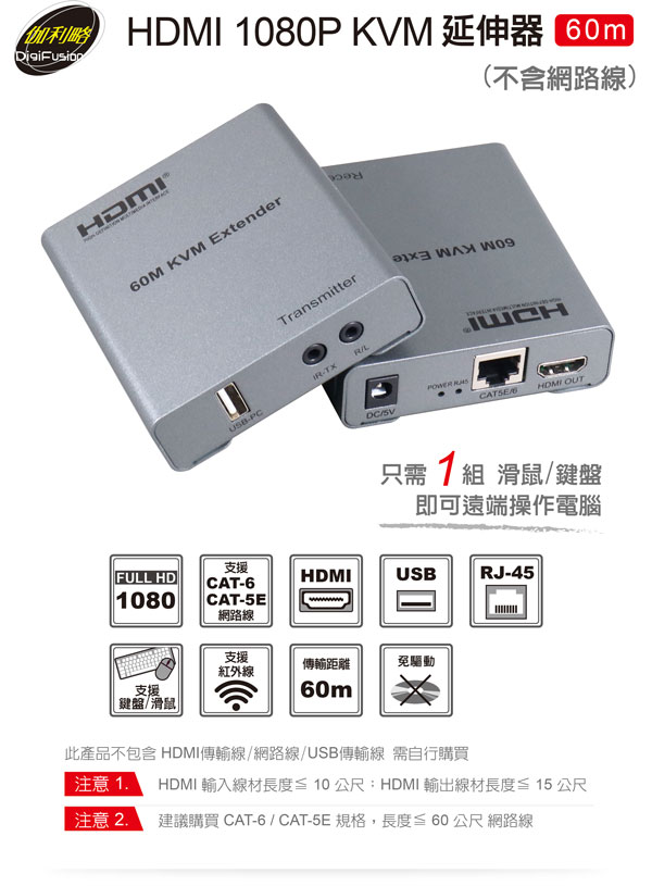 ¡½ §Q¥Îºô¸ô½u¡A¥i±N°T¸¹©µªø¨ì60¤½¤Ø: ¤ä´© CAT-6 / CAT-5e ³W®æºô¸ô½u¡Gªø«×¡Ø 60¤½¤Ø (»Ý¦Û¦æÁʶR)