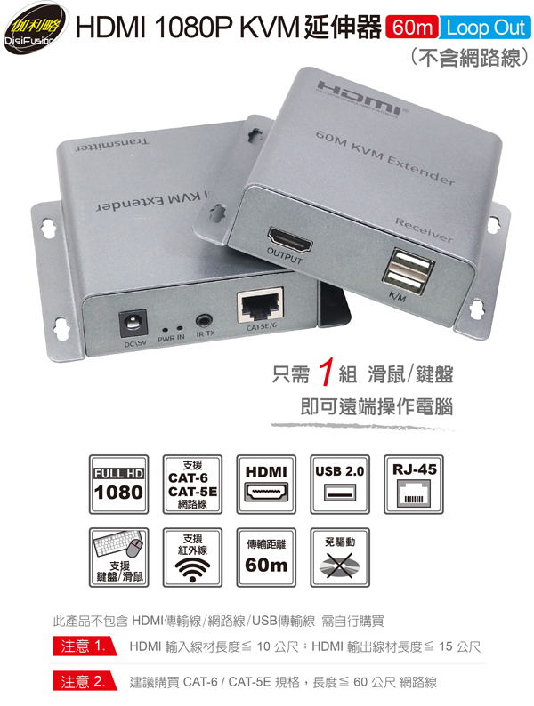 ¡½ §Q¥Îºô¸ô½u¡A¥i±N°T¸¹©µªø¨ì60¤½¤Ø: ¤ä´© CAT-6 / CAT-5e ³W®æºô¸ô½u¡Gªø«×¡Ø 60¤½¤Ø (»Ý¦Û¦æÁʶR)