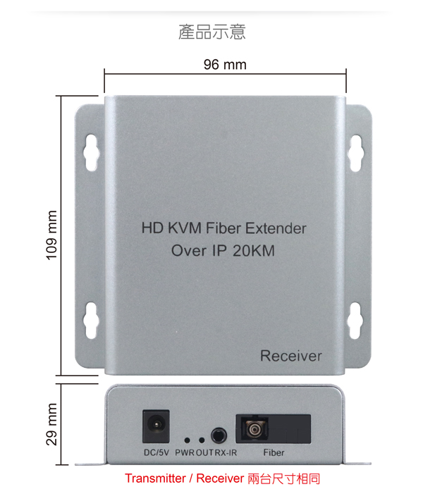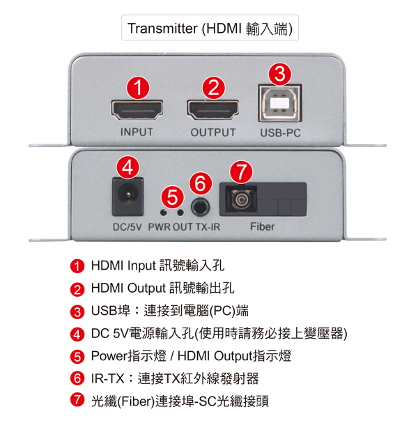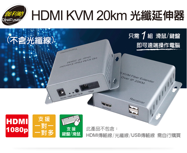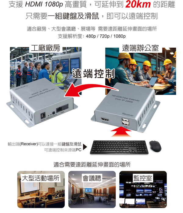 - 利用光纖線(使用SC接頭規格),可將HDMI訊號延長到20公里(km):