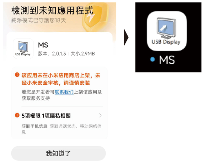 2. 允許安裝APP,安裝完之後會顯示APP圖示 |