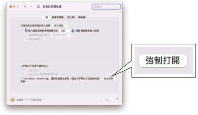 2. 如果無法執行驅動程式,請開啟「安全性與隱私權」,並允許來源下載的APP |