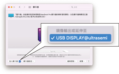 5. 在下方的 加入顯示器 點選 > USB DISPLAY。 |