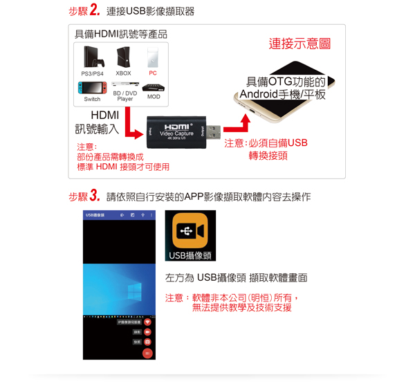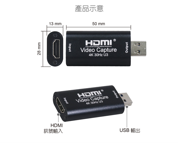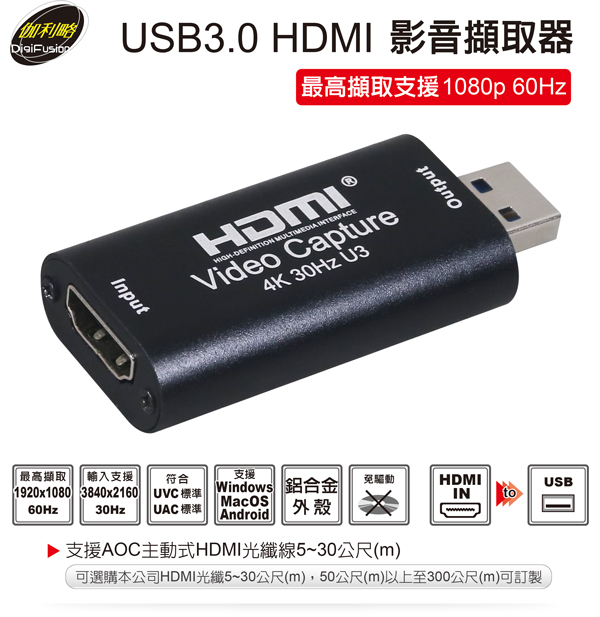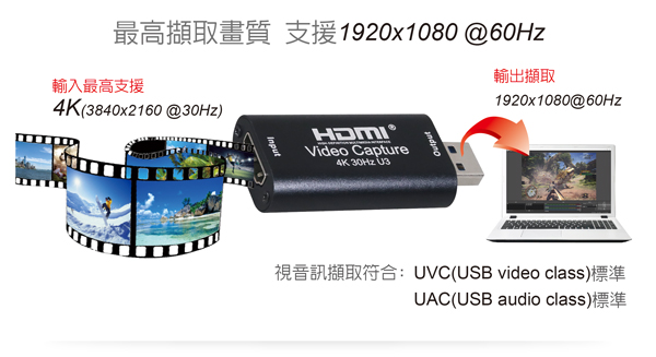 - 視音訊擷取符合: UVC(USB video class)標準 / UAC(USB audio class)標準