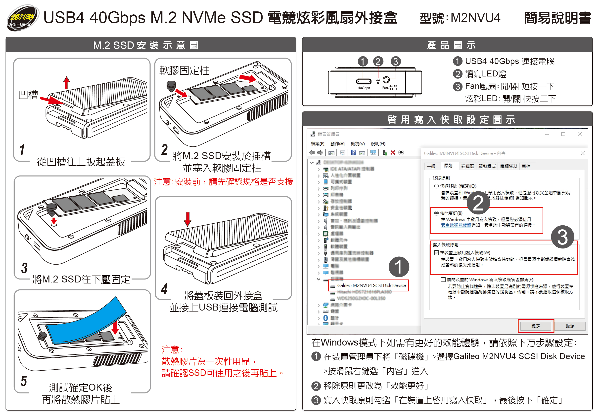 - 4重散熱模組設計(散熱風扇+散熱鋁製蓋板+導熱膠片+側對流散熱孔)