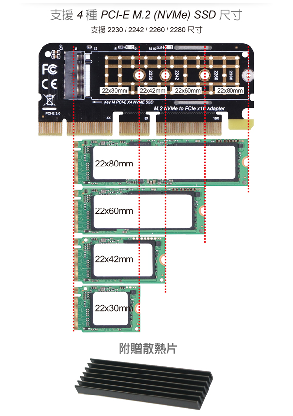 ¡½ ¤ä´© 30 / 42 / 60 / 80 mm ªø«× PCI-E ³W®æ M.2(NVMe) SSD
