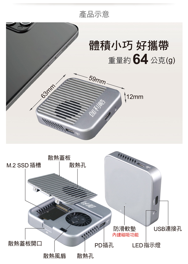可連接iPhone 15/16,一邊拍攝、錄影,一邊直接儲存在M.2 SSD內,不占用手機內存空間