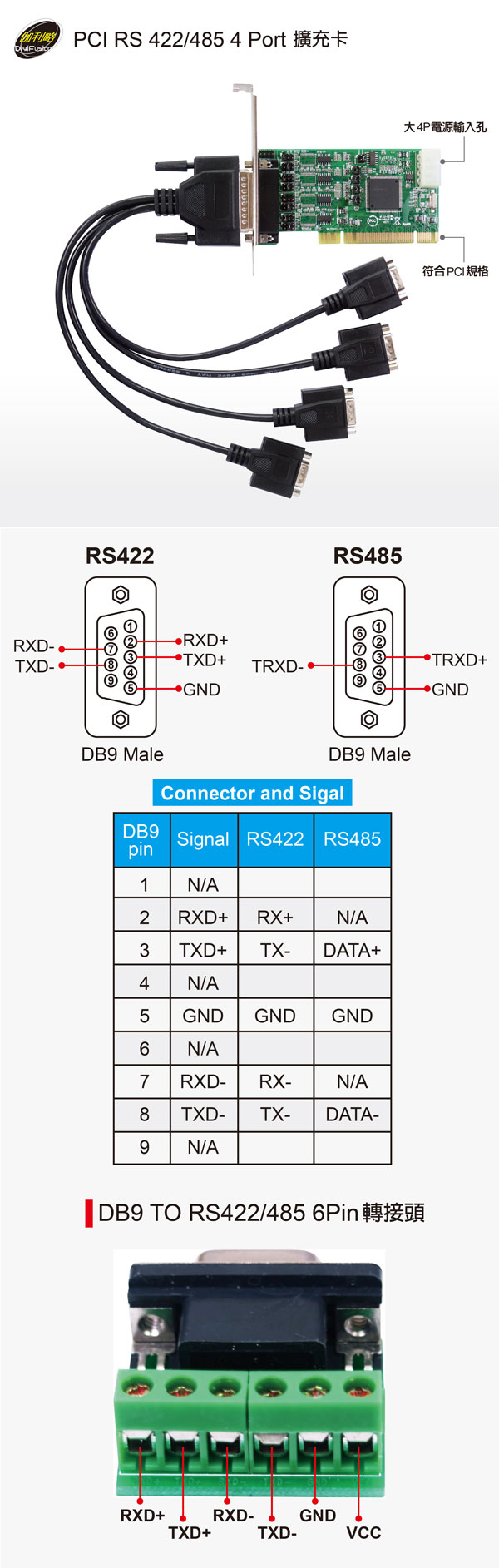 ■ RS-422:TXD引腳+,TXD-,RXD +,RXD-,GND